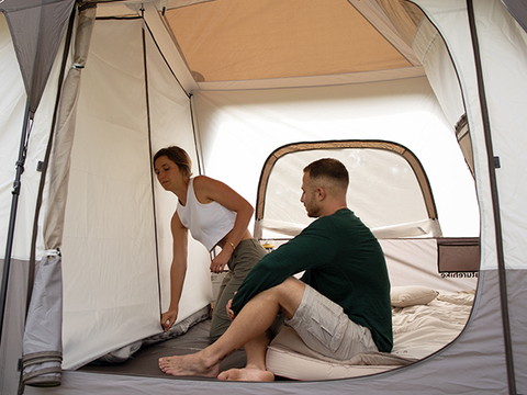 Палатку можно разделить тканевой завесой на два помещения, что придает дополнительный комфорт отдыху.