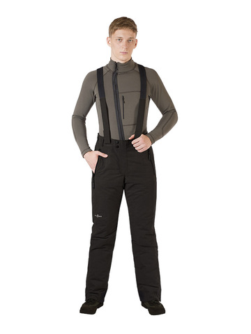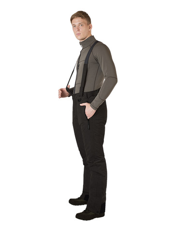 • По низу брюк: два боковых разреза на «молнии»; усилитель для предотвращения истирания ткани верха; разъемные снегозащитные муфты на «велкро»