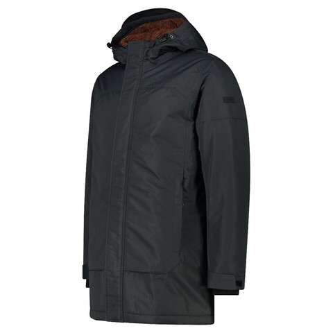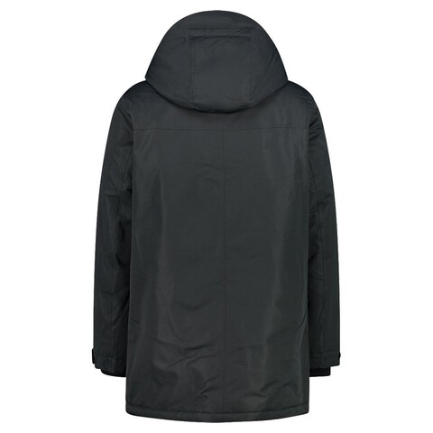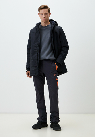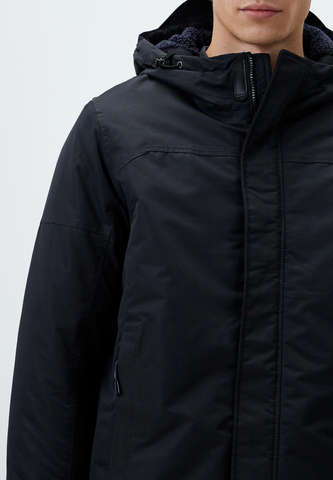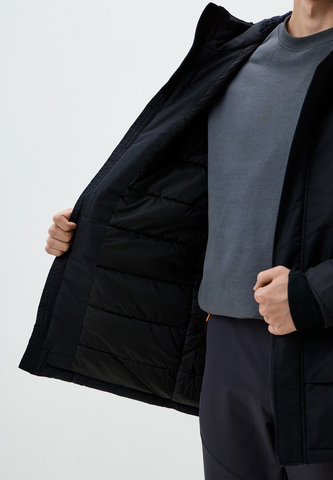 Модель с передней молнией с ветрозащитной и противоизтирающейся планкой, съемным капюшоном, внутренней манжетой и высоким воротником.
