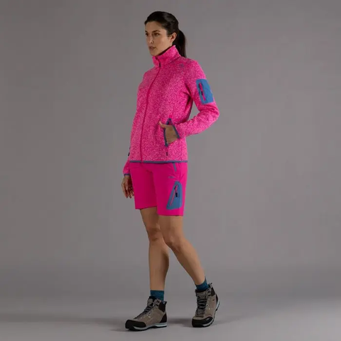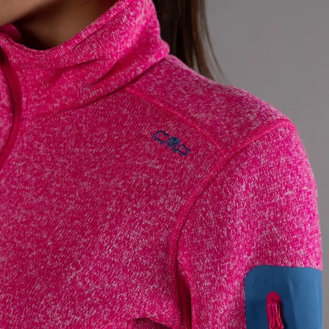 Меланж Knit-Tech флиса с контрастной темно-синей окантовкой. Трикотажный флис — один из знаковых предметов одежды CMP, созданный на основе глубоких производственных традиций группы Campagnolo. Ткань изготовлена с использованием специального процесса, придающего ворсу эффект меланжа, напоминающий шерсть, с безошибочным ощущением активного отдыха. Передняя молния оснащена внутренней ветрозащитной вставкой и гаражом против натирания. Низ и манжеты с эластичной кромкой для лучшего прилегания к телу даже при самых сложных движениях. Два боковых кармана на молнии, к которым добавлен термо накладной на рукаве.
