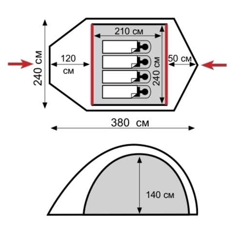 Внутренняя палатка: 100% дышащий полиэстер RipStop