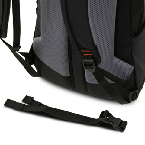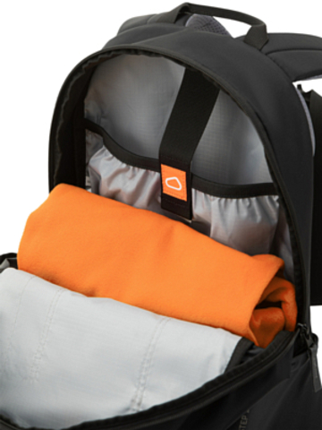 - Отделение для ноутбука или планшета расположено у самой спины и отделено от основного объёма рюкзака. Достаточно скинуть рюкзак на одно плечо, чтобы расстегнуть молнию и достать компьютер.