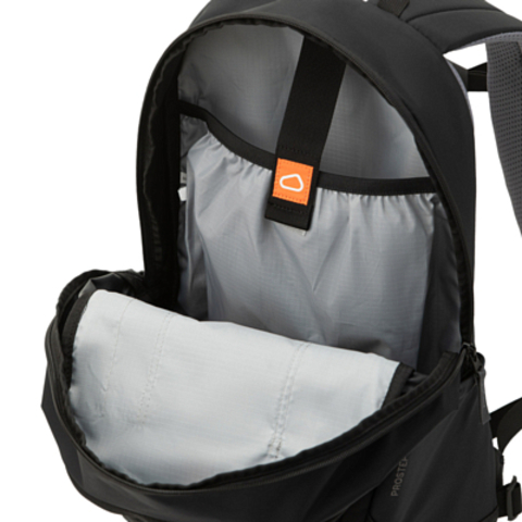 - Съёмный поясной ремень сделан из стропы и, будучи отстёгнутым, занимает минимум места внутри рюкзака.