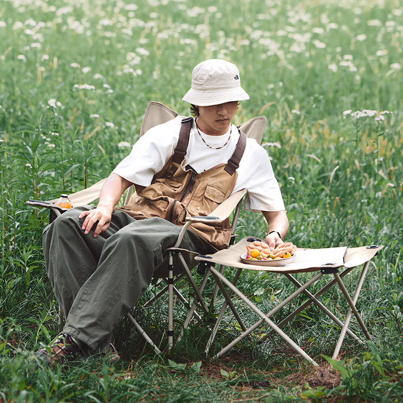 Кресло выполнено из прочной ткани 600D Oxford, устойчивой к истиранию и воздействию внешней среды. Каркас из углеродистой стали обеспечивает устойчивость и долговечность даже при максимальной нагрузке. Спинка регулируется по углу наклона, позволяя перейти от сидячего к полулежачему положению. В комплект входит отдельная секция с подставкой для ног — её можно использовать как подножку или как небольшой столик. Съёмный подголовник добавляет комфорта при длительном отдыхе. Конструкция быстро собирается и компактно складывается, что удобно для транспортировки в багажнике автомобиля.