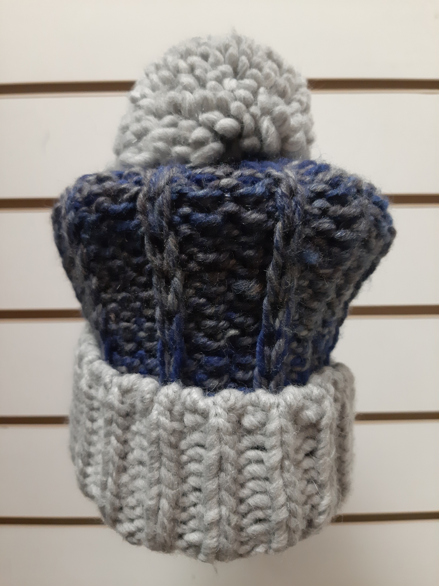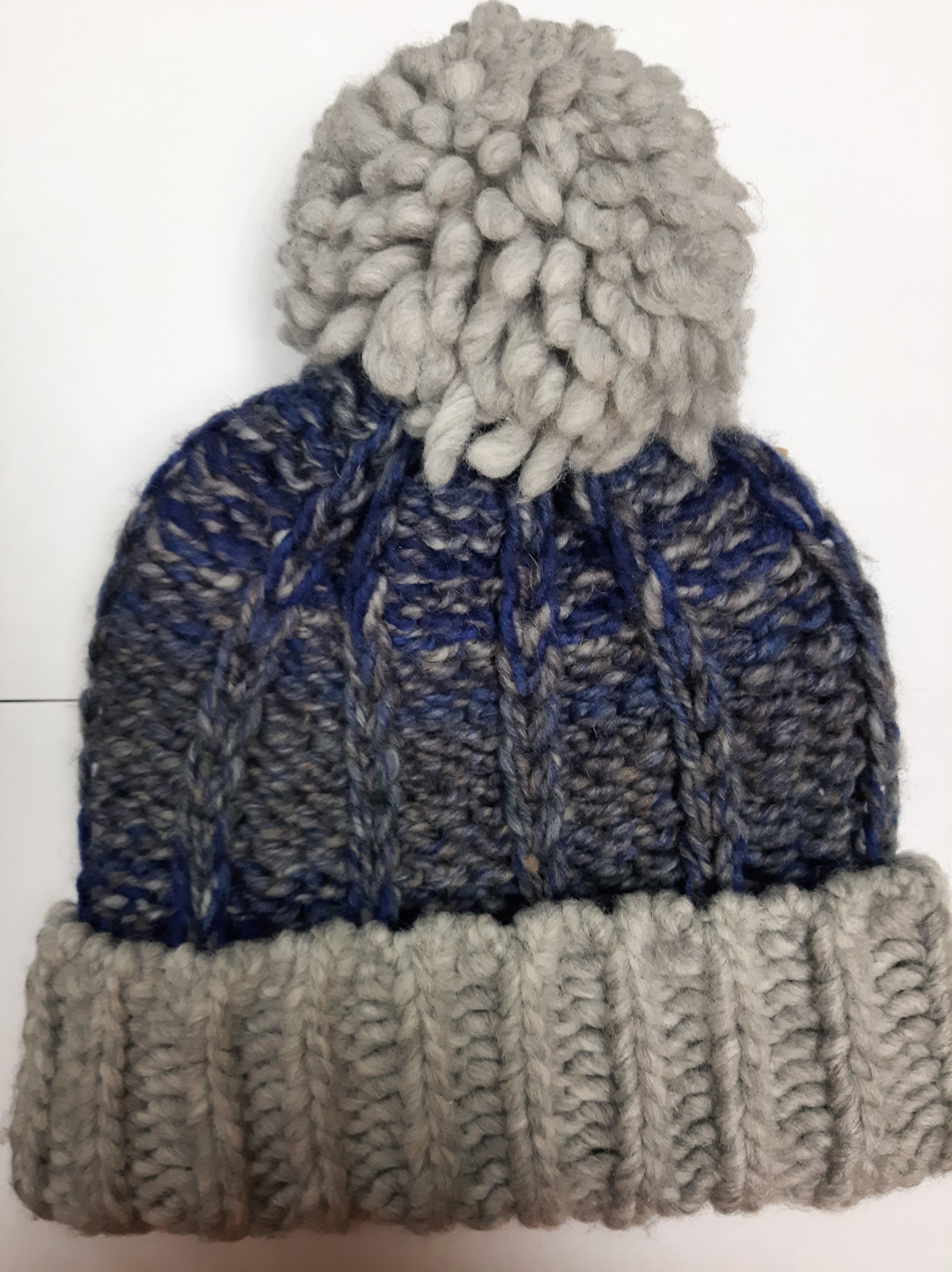 Шапка с отворотом и помпоном.