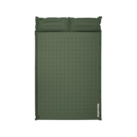 Конструкция выполнена из прочного полиэстера 190T с TPU-покрытием, устойчивого к износу и влаге. Внутренний слой — эластичная вспененная PU-пена (полиуретан) с открытыми ячейками, обеспечивающая автоматическое наполнение воздухом и равномерную поддержку. Такая комбинация материалов делает модель долговечной и устойчивой к влаге. В изголовье коврика встроены подушки для двух человек, они формируются при надувании коврика и образуют слегка приподнятую зону для головы. Эргономичная форма повторяет естественный изгиб шеи и обеспечивает более стабильное положение головы во время сна.