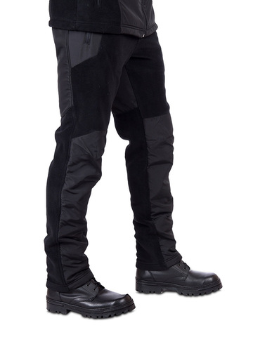 Брюки флисовые с ветрозащитными накладками и анатомичным кроем. Брюки умеренного объема, прямого силуэта.
