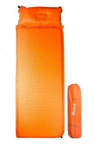 Самонадувающийся трехсезонный коврик Tramp TRI-017 ярко оранжевого цвета с отстегивающейся подушкой.