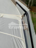 По нижней кромке тента пришита юбка. Она равномерно растягивает тент, не дает дождю затекать под дно и защищает от сквозняков.