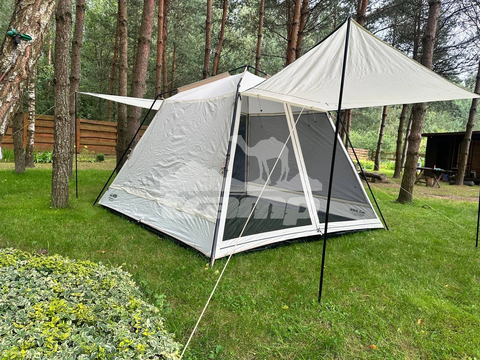 Съемный пол из терпаулинга позволяет использовать шатер как палатку для ночевки.