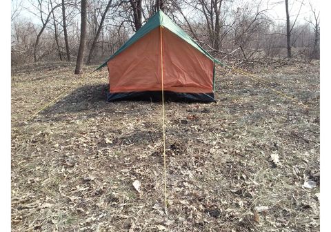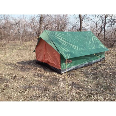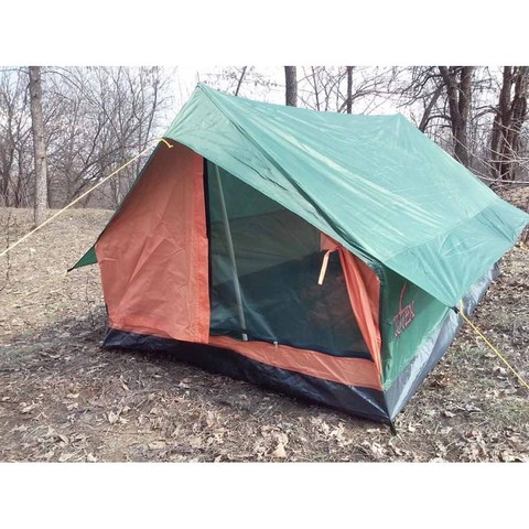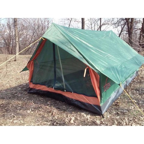 Палатка однослойная. Единственный вход - двойная дверь с москиткой.
