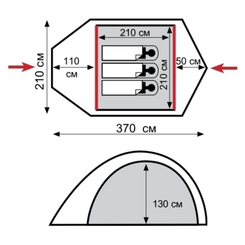 Внутренняя палатка: 100% дышащий полиэстер