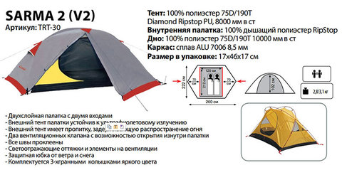 - Внешний тент имеет пропитку, задерживающую распространение огня