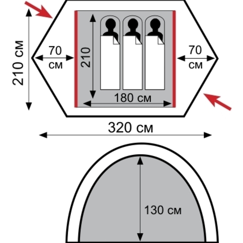 - Двухслойная палатка с двумя входами и двумя тамбурами