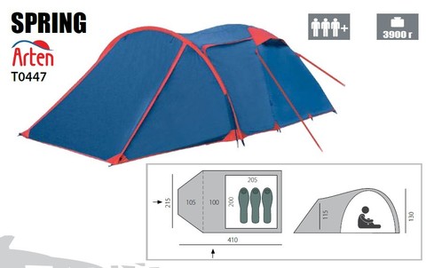 Двухслойная палатка Spring с двумя входами и увеличенным тамбуром идеально походит для несложных походов в весеннее, летнее и осеннее время.