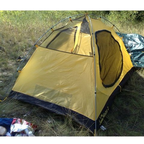 Легкая трехместная двухслойная туристическая палатка с увеличенными тамбурами для вещей. Универсальная серия Tramp.